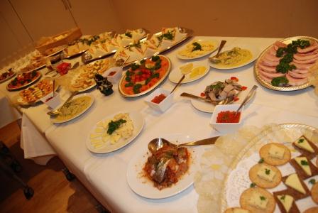 ノルウェーサーモンや、ユールシンケ(クリスマスハム)、ニシンの酢漬け、チーズやクラッカーなど、北欧の食材中心のお料理も好評で、食事に続き数々の余興も行われました。