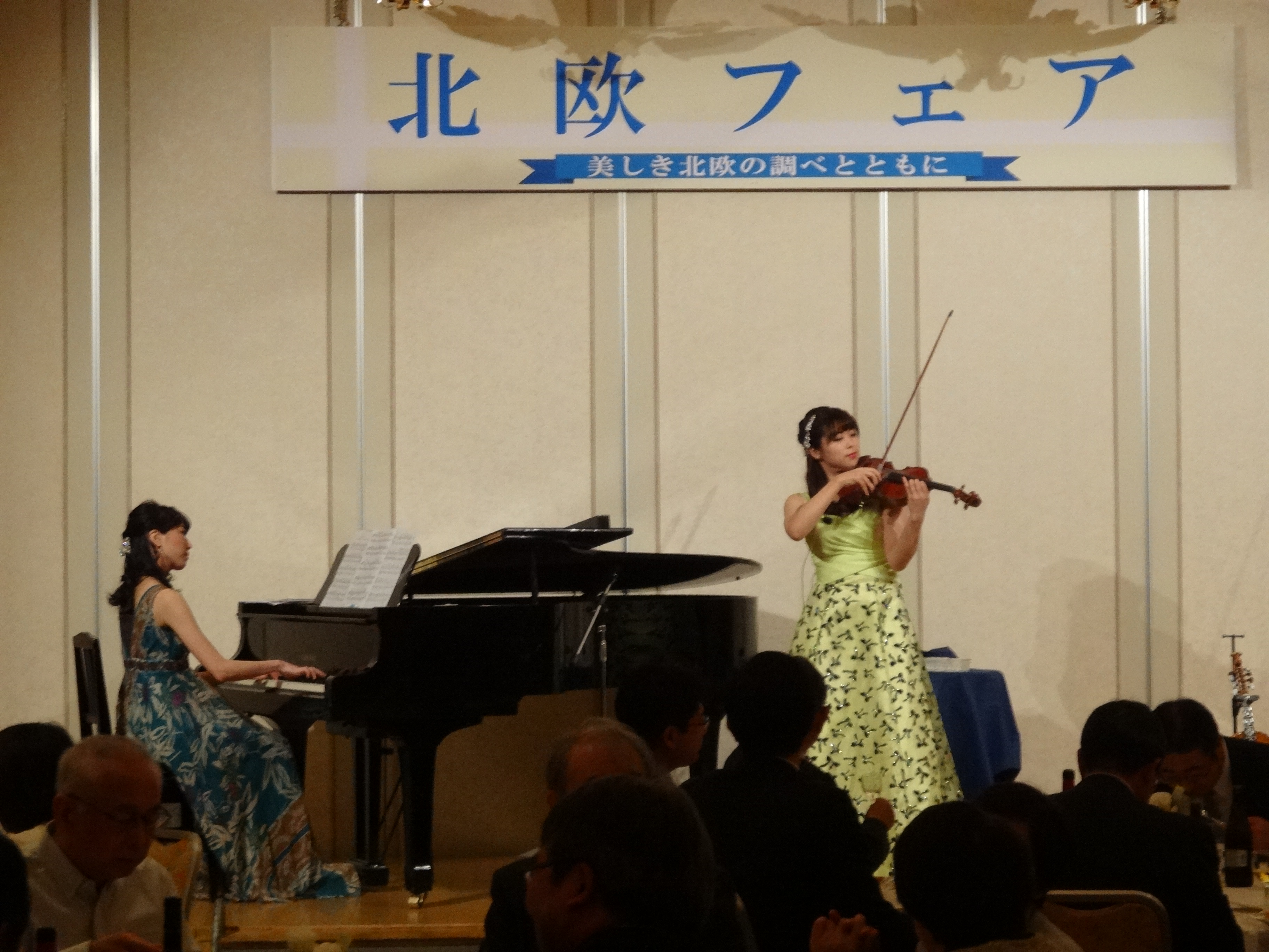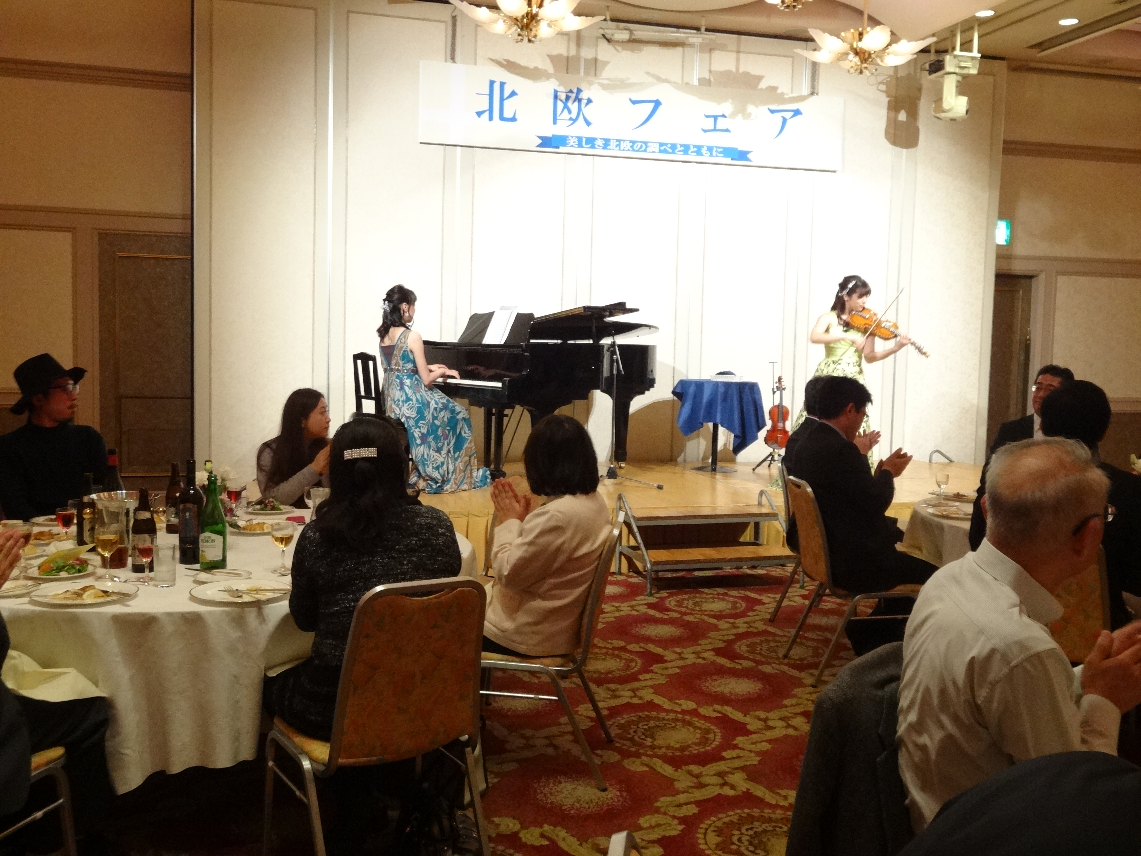 北欧ディナー後には、ヴァイオリニストで現在ハルダンゲルヴァイオリン演奏でも活躍中の若宮百香さんの特別ミニコンサートが開催され、ご来場のお客様に北欧クラシック(クラシック、民族音楽)をお楽しみ頂きました。