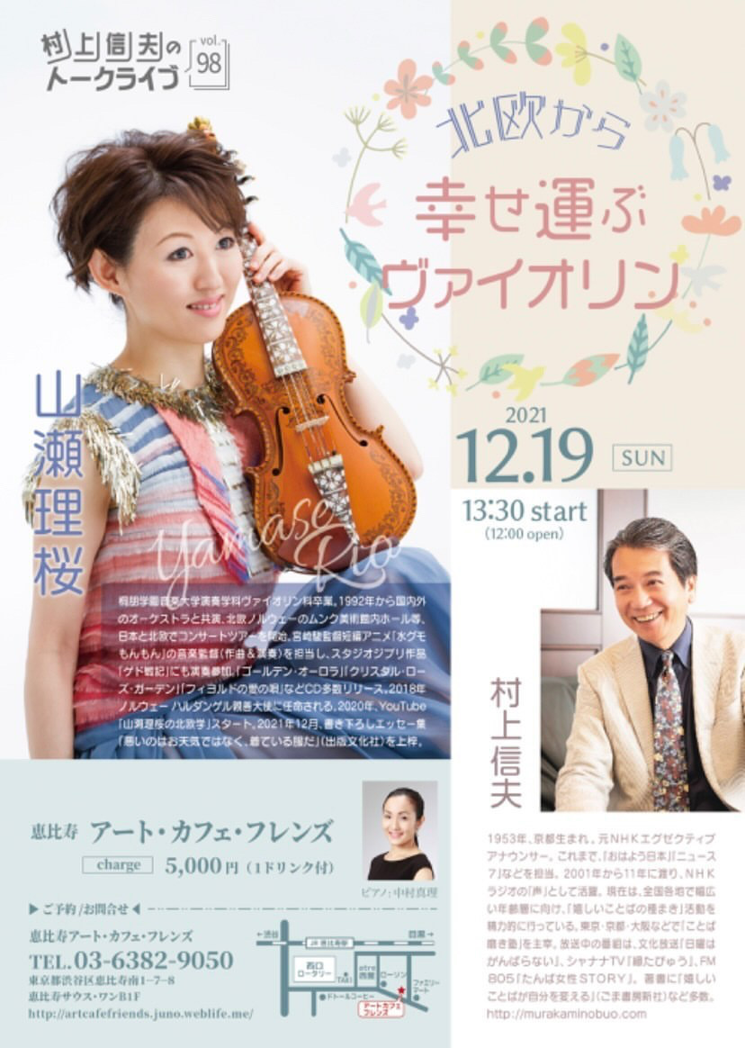 村上信夫のトークライブvol.98「北欧から幸せ運ぶヴァイオリン」にゲスト出演♪