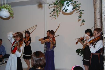 4月24日(日)観光客で賑わうお洒落な街、代官山で、北欧テイストのお料理と、山瀬理桜&リオンミュージックのハルダンゲルヴァイオリンのミニコンサート、そしてハルダンゲルヴァイオリンを体験できるという三本立ての企画に30余名の方がご参加いただき無事終了、好評を博しました。