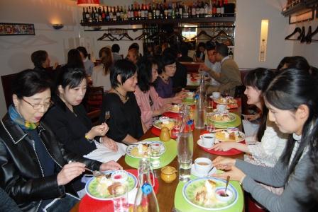 また今回は、北欧ヴァイキングが遠征し、文化を高めたシシリア地方の料理のお店でドルチェ(デザート)をおいしくいただき、トークの後には山瀬理桜理事長と、山瀬クリスティーナ静香さんがハルダンゲルヴァイオリンを演奏し、手拍子で盛り上がりました。ハルダンゲルヴァイオリンの演奏を初めて聴かれた方も多く、美しいフォルムと音色に耳を澄ましていらっしゃいました。